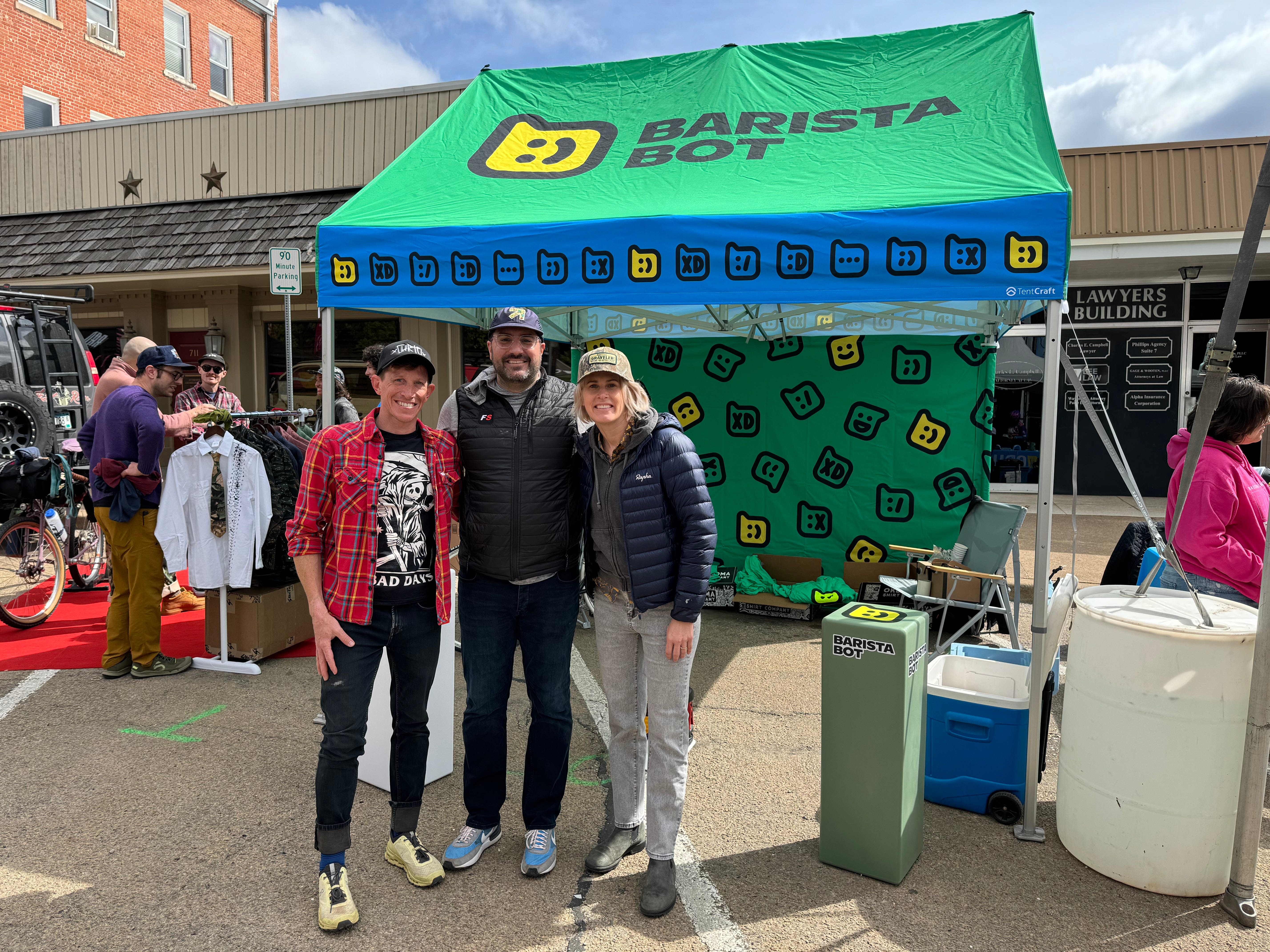 Barista Bot was stationed by the Vandoit tours and across from Scotti Moody with Arkansas Graveler and Dr. Seth Wood, with Bike Magic, who I recognized immediately as two prominent stars of the documentary “Relentless Ride,” a film directed by one of my long-time friends, Brian Hill.